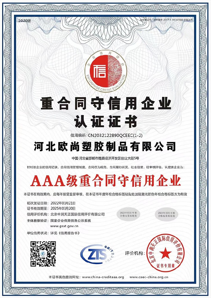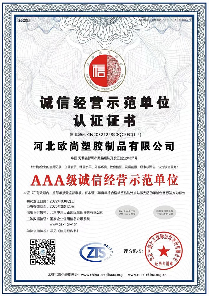 诚信供应商登记证书